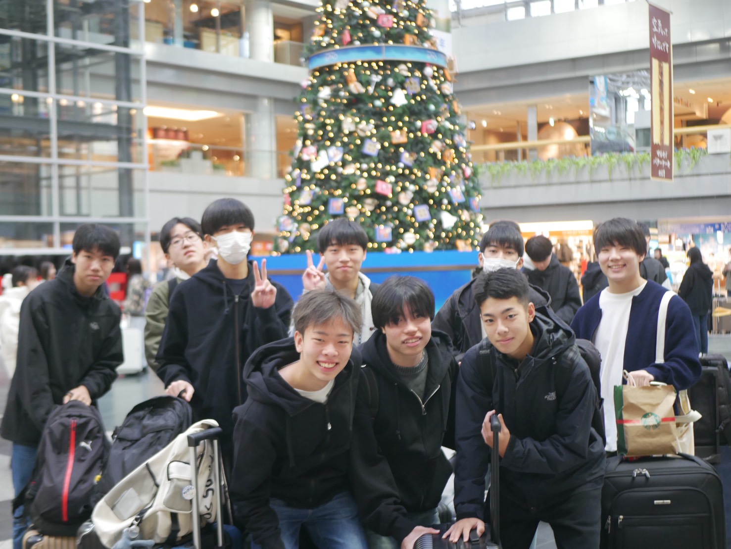 2025.12.08 ⭐︎研修旅行【沖縄】1団1日目2年生 待ちに待った研修旅行が始まりました。飛行機は2チームに分かれて沖縄へ。先発チームは順調に進み、着けば離陸前の雪景色とは真逆の暖かさと匂い。後発チームは飛行機の遅延にも遭い、4時間遅れでなんとか夜の那覇へ。この後はゆっくり休んで明日に備えます。4日間、充実した研修旅行にしましょう。