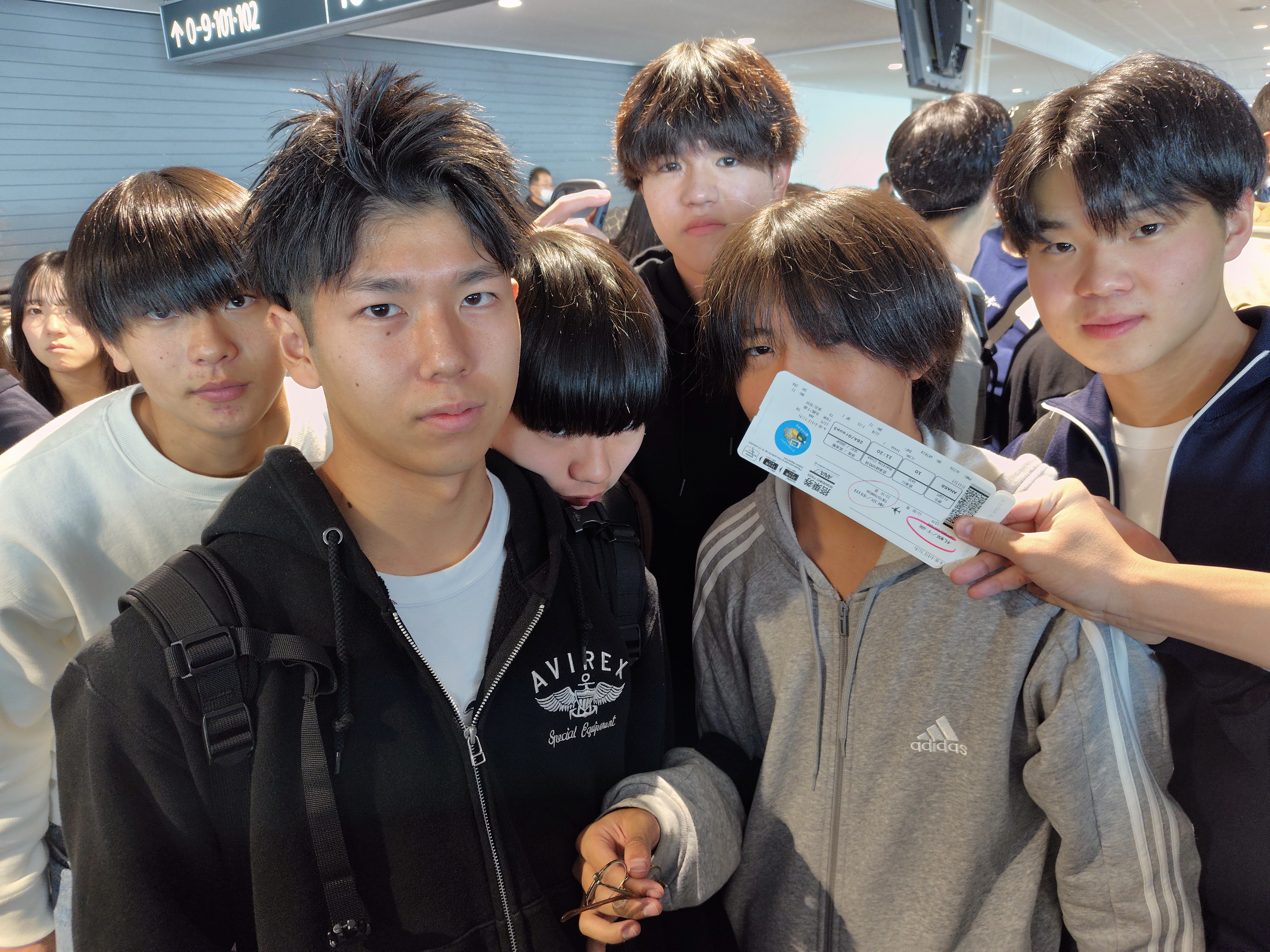 2025.12.09 ☆研修旅行【沖縄】2団 1日目2年生 第2団の研修旅行、いよいよ始まりました。昨日の地震や悪天候の影響を受けつつも、無事全員が千歳を出発することができました。経由地の羽田で1時間遅れとなりましたが、19時頃には那覇に到着、20時半にはホテルに着き、ご飯をもりもり食べて過ごしました。体調不良者も出ず、とりあえず元気にスタートを切れています。
