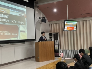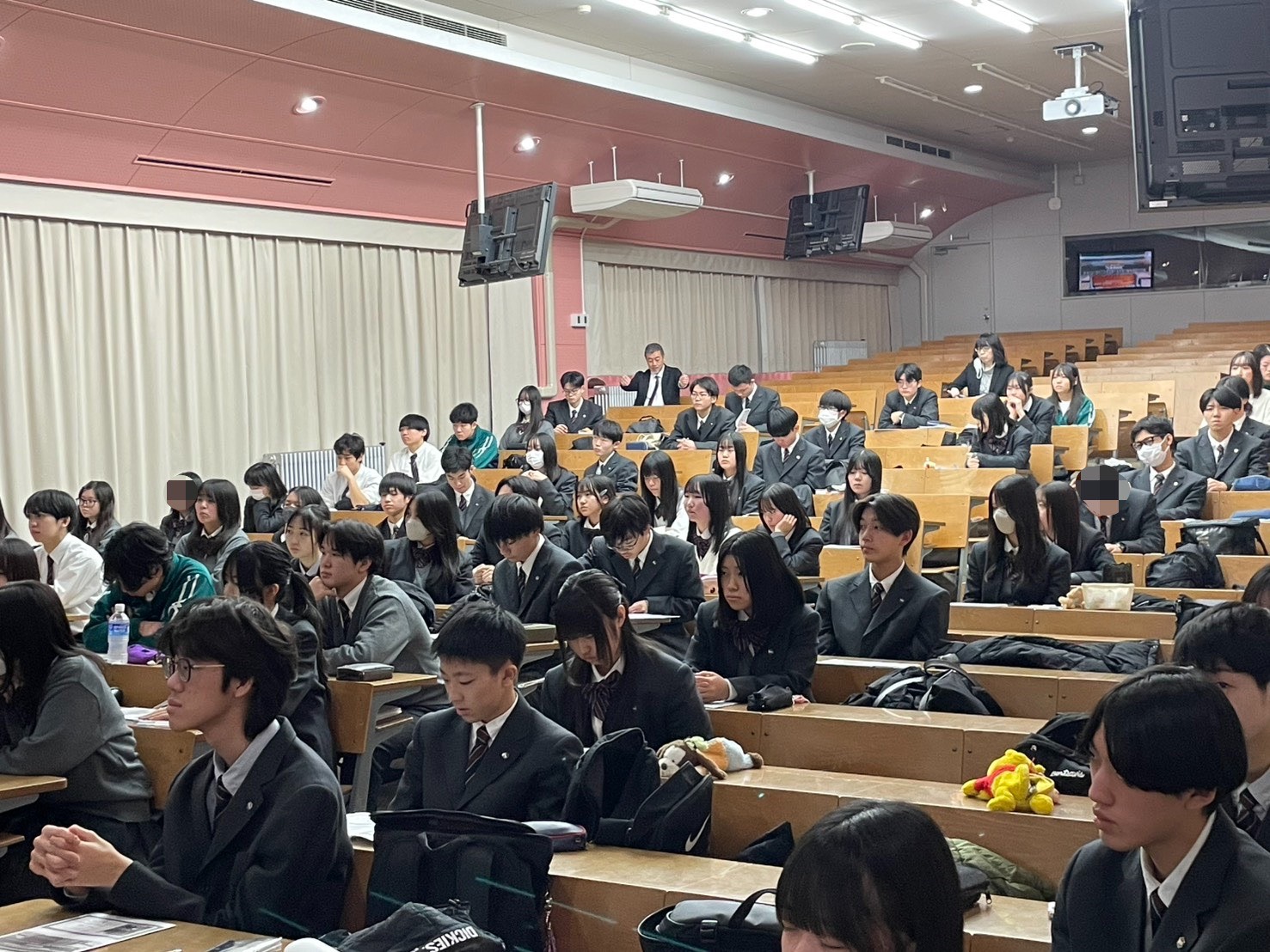 2025.12.24特進コース ベネッセによる進路講演会が開かれました特進 冬期休業日が始まる本日12月24日より3日間、冬期講習が行われます。本日はベネッセコーポレーション畑林大樹さんにお越しいただき、1,2年生を対象に進路講演会をしていただきました。勉強に対する考え方や、国公立大学の魅力、現在の受験について親しみやすくわかりやすい話でモチベーションアップや勉強の向かい方の成長に繋がりました。合言葉は「コツコツが勝つコツ」