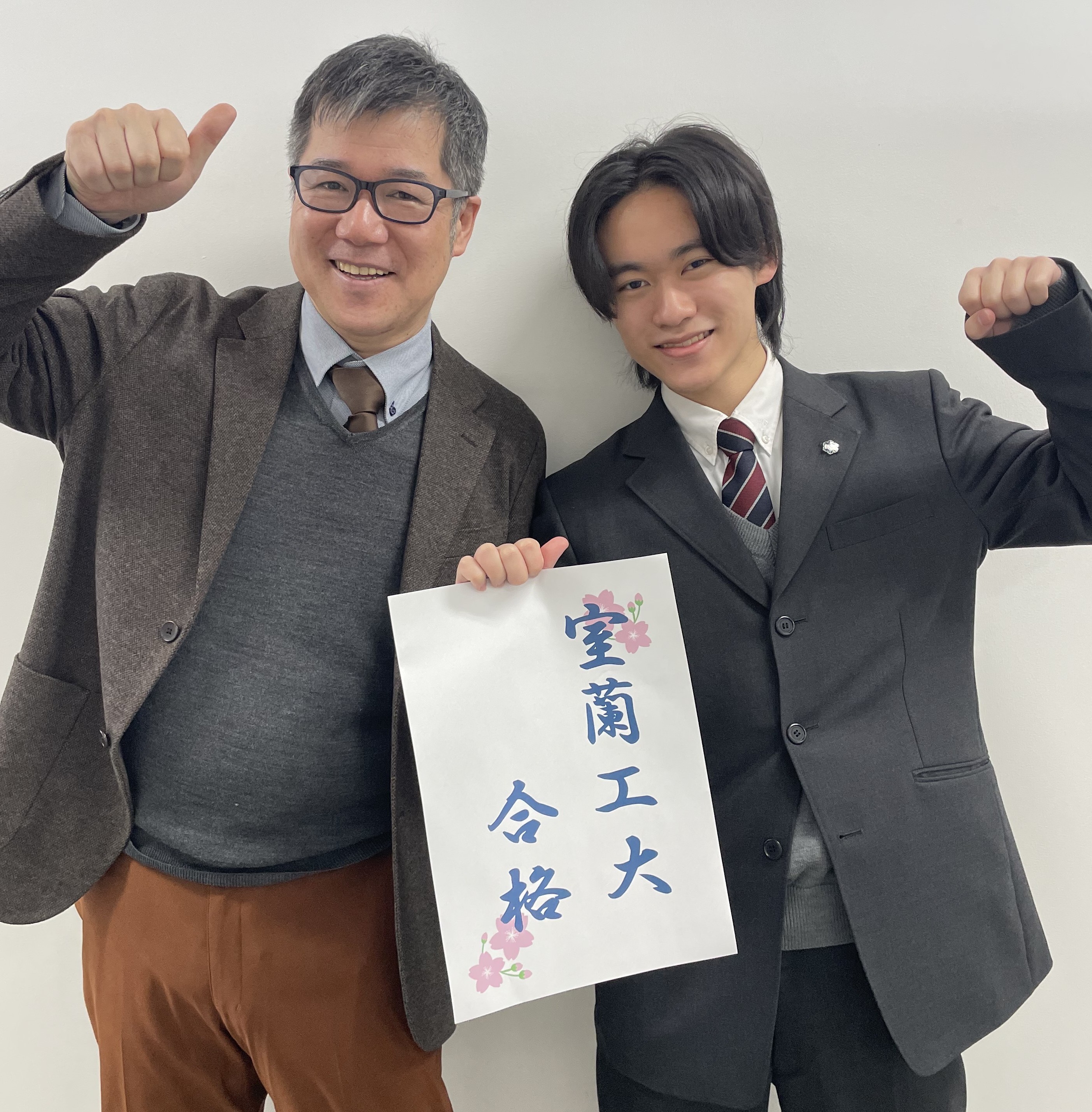 2026.03.09特進コース 学校推薦型選抜で小樽商科大、室工大合格!特進 共通テストを利用した学校推薦型選抜で小樽商科大学と室蘭工業大学に合格者が出ました。指導にあたった先生と記念撮影です。合格おめでとう!