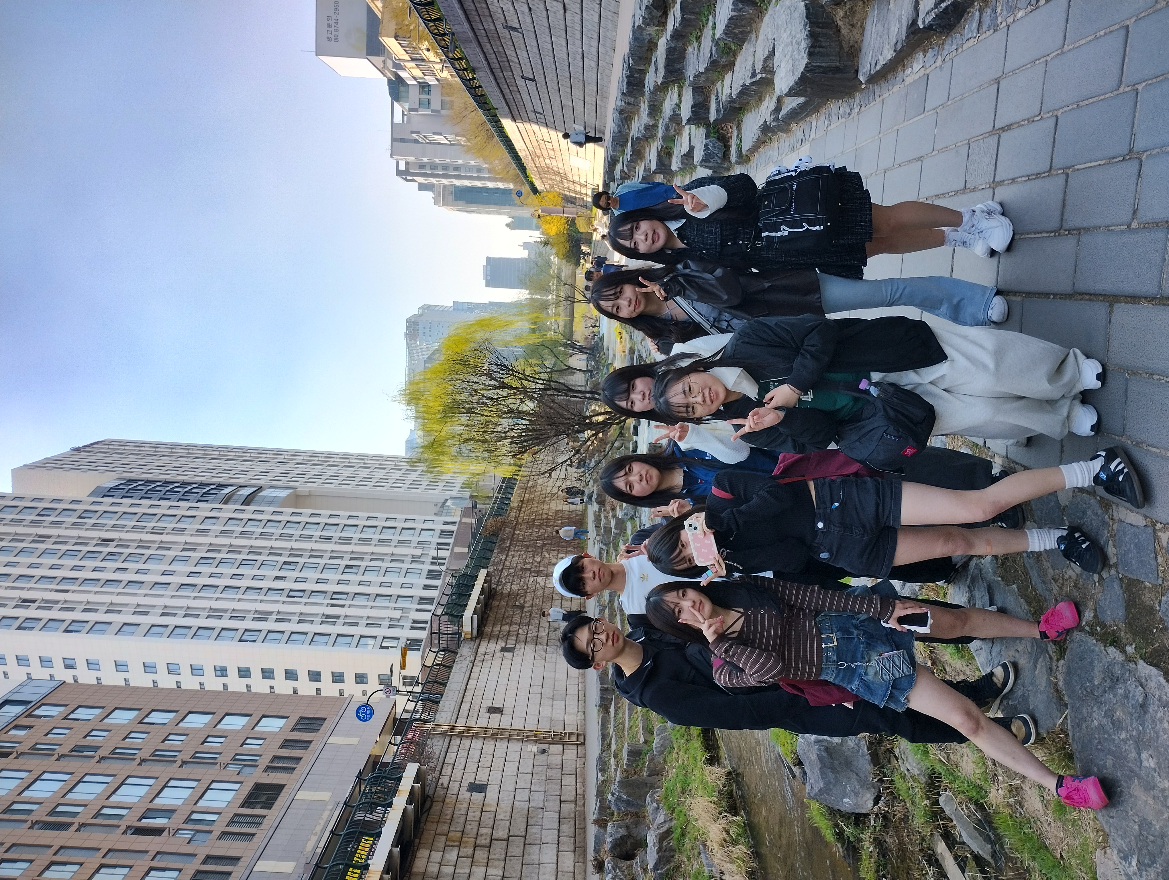 2026.04.02 第1回大韓民国語学文化研修報告2お知らせ 今日はSDGSを歴史と現代から考える研修で、世界遺産の宗廟を、ガイドの方からレクチャーを受けながら見学しました。さらに景徳宮を見学し、広蔵市場で韓国の食文化にふれました。午後は都市再生プロジェクトの舞台を散策し、まちづくりについて学びました。